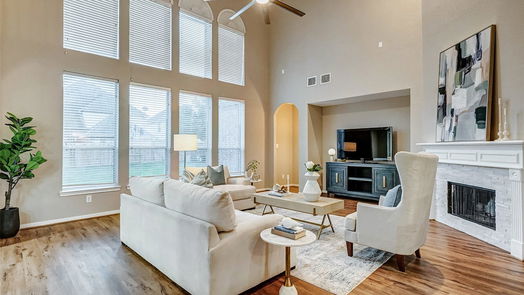 Completely updated Village Builders home on premium corner lot in the Master Planned Lakes of Bella Terra. Charming covered front porch welcomes you to a grand foyer, formal dining room, & study w/built-ins. Open-concept family room w/soaring 2-story ceilings, stacked windows, & corner fireplace, flows effortlessly to the breakfast space & Chef's island kitchen; boasting beautiful 42" wood cabinetry. 1st floor Primary Suite offers spa-like en-suite bath w/dual sinks, jetted tub + separate shower & huge walk-in closet w/custom built-ins. Upstairs game room, 4 guest beds & 2 baths for sharing. ALL NEW floors, carpet, paint, quartz in kitchen & primary bath, light fixtures on 1st floor, marble backsplash, painted cabinets, GE profile stove & landscaping. Also features pre-wired alarm & in-ground lawn sprinkler. Back patio overlooks huge backyard. Community amenities including rec centers w/pools, splash pads, parks, fitness center, tennis courts, volleyball court, fishing ponds & more!