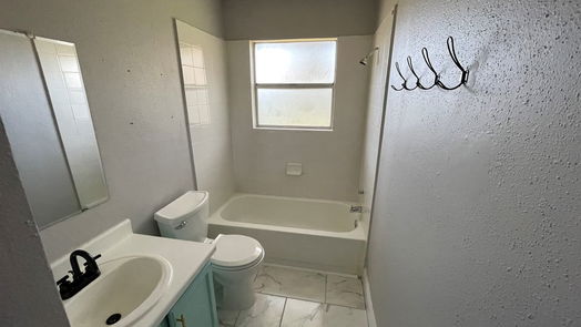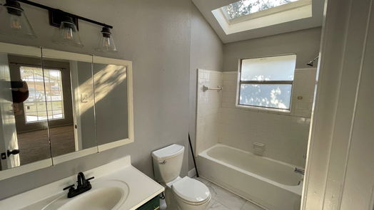 This Mission Glen home is 3 bedroom - 2 bath - 2 car garage in a well-established, mature neighborhood. This house boasts new roof (2 years old), a new driveway, and an extremely livable floorplan with cathedral ceilings in both the primary bedroom and living spaces. Both bathrooms have been remodeled within the last three years. Primary bathroom features a skylight for added natural light. Minutes from Westpark Tollway. Zoned to Fort Bend ISD.