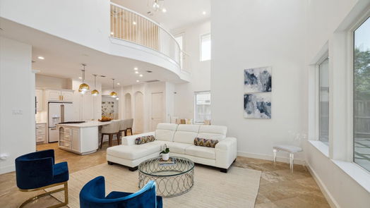 Modern sophistication meets comfort inside the stately white stucco with beautifully renovated, modern transitional interior. Double entry doors open to a soaring two-story foyer and a striking glass-paneled staircase. Entertaining levels up in the dining room with raised ceiling and back-lit onyx, accenting a wet bar with top-tier amenities: dishwasher drawers, beverage fridge, wine storage and ice maker. An expansive quartz kitchen with large island perfect for casual dining and seamless with a two-story great room, is the pulse of the home. Floor-to-ceiling windows offer lush views of the "pool-ready" private yard with pool bath and a community garden, beyond. The lofty primary suite is a haven, featuring a luxurious bath with exquisite quartz shower, soaking tub and elegant gold fixtures. Upstairs, a second primary suite, two secondary bedrooms and game room with balcony. A separate, full apartment is above the detached garage. A full-house generator provides uninterrupted comfort.