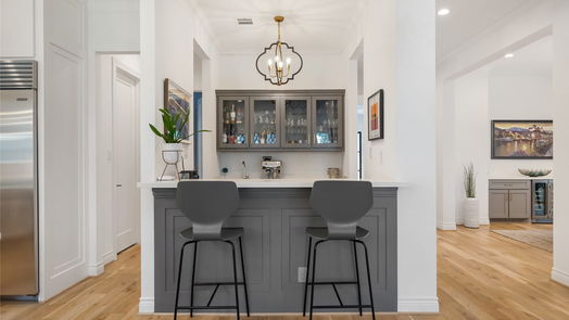 Come view the exceptional quality of this absolutely stunning 5 bedroom home in Garden Oaks! High-end finishes throughout from it's two-story foyer with iron railing to plastered fireplace. Amazing island kitchen is open to the living areas and has great storage and counter space, upper glass front cabinets, Subzero fridge, Wolf range, pot filler and even a warming drawer. The center bar and/or coffee bar is perfect for entertaining. Beautiful dining room has a built-in buffet with wine chiller. Fabulous primary, with a large bedroom and exquisite bathroom with separate soaking tub and walk-in shower with body sprayers and amazing closet, is a true owner's retreat. Play or watch movies in the game or additional family room upstairs. 3 secondary bedrooms are upstairs and the 5th bedroom (current office) is down, each with it's own en suite bath. Enjoy outdoor entertaining and cookouts at the summer kitchen under the covered porch. The backyard offers plenty of room for a pool and play!