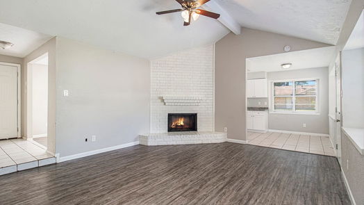 Welcome to 15503 Golden Eagle, a stunning single-story home with four bedrooms and two bathrooms, featuring a brick and Hardy exterior with charming wood trim. Upon entry, you'll find formal living and dining rooms seamlessly connected. The updated kitchen boasts granite laminate countertops and modern cabinetry, flowing into a cozy breakfast area and a spacious family room with vaulted ceilings and a wood-burning fireplace. A converted garage offers versatile flex space with ample storage. All bedrooms are conveniently located down a corridor off the family room, with easy-to-maintain tile and vinyl flooring throughout.