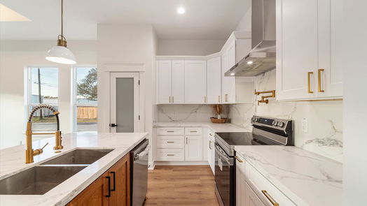 Modern craftsman home with a gourmet kitchen, spacious living areas, and a fenced backyard.