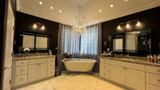 This modern marvel, gorgeous 3 story home is ready to move-in. With it's 3 bedrooms, 3.5 bathrooms and handicap accessible elevator, this home is extensively remodeled with beautiful white marble tiles, large primary shower with gray marble tiles, granite counter-top and large island, Restoration Hardware bear claw tub, faucets, shower hardware. All 3 remote controlled fireplaces are covered with elegant white marble natural stone. Other features include hard wood floors and stairs, plantation shutters throughout the house, amazing custom lighting, triple crown molding, custom primary bedroom closet cabinets and primary bathroom with bidet, whole house water softener, kitchen with all Thermador appliances where you will enjoy cooking.
