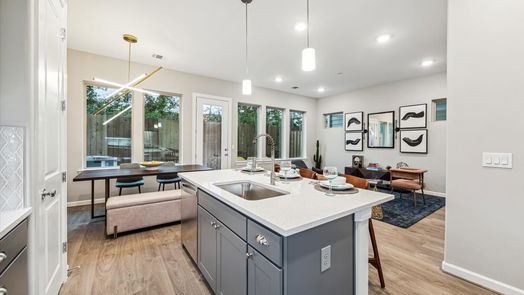 Ideally located just north of Garden Oaks is the gated community of Pinemont Heights by Houston’s 4th generation developer, Farb Homes. The freestanding home consists of 2 levels (living on main), 3 bedrooms, 2.5 baths, private front-loading driveway, spacious yard & low HOA fees. Approach through the divided light entry door to an open concept, window lined Great Room allowing for a multitude of living arrangements complete high ceilings & a French door that opens to the sizable yard. The Island Kitchen is finished with quartz countertops, top tier Whirlpool appliances, soft close drawers, designer glazed backsplash & upgraded lighting arrangement that enhances the space. Ascend to the 2nd floor to find the Primary suite with coffered ceilings, an expansive walk-in closet w built-ins, dual vanities clad, 6’ soaking tub with skylight & a frameless glass shower enclosure. Completing the level is 2 generous bedrooms, expansive bath with shower/tub & utility room. Ready for Move-In!
