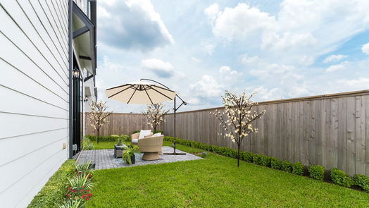 Gorgeous new FOUR bedroom, FIRST FLOOR LIVING home with very spacious and private BACKYARD (40ft x 22ft) in GATED beautiful community. Beautiful open entry way leads to grand 12-ft ceiling living area perfect for entertaining with epic 10-ft tall glass sliding trifold doors that showcase large backyard & provide the perfect backdrop for your living space. Stunning white kitchen w/ upgraded white marble herringbone backsplash, quartz countertops, and SS Fisher Paykel appliances/ large dining space. Three bedrooms on 2nd floor including primary & one more bedroom/game room/rooftop terrace on the third floor. Primary bathroom flooded with natural light & huge windows w/ genuine imperial white marble slabs on the countertops and floors/walls w/ elegant freestanding tub. Zoned to Sinclair Elementary& walkable to Jaycee Park (Pickleball/tennis courts, playground, walking trails, fountains, baseball/soccer fields). Blossoming Heights area w/ new shops and restaurants within walking distance!