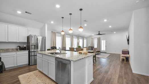 Welcome 7519 Greenbriar Canyon Ln, a beautiful home in Winward. This single story home boasts high ceilings, open living spaces, 4 bedrooms, a private home office & covered rear patio. The kitchen is equipped with stainless steel appliances, granite countertops, white cabinetry & an island with designer pendant lighting above. LVP flooring extends throughout - no carpet! Primary suite with a generous walk-in closet. The guest bath has two separate vanity/sink areas. Walk-in utility room. Zoned to Katy ISD schools including Nelson Junior High & Freeman High School that will both open in the fall of 2024 - all zoned schools will conveniently be located less than 2 miles away. Don't miss this one!