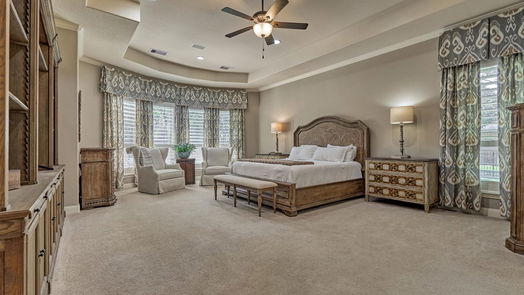 Exceptional home, built by Coventry Homes in prestigious Elk-Trace Golf Estates within Woodforest, situated on sprawling acre lot with lush landscaping & remarkable curb appeal w/circle drive. Featuring 5 spacious bedrooms & 4 baths, the home is filled w/elegant design touches, including grand courtyard with stone fireplace that adds a touch of charm. Inside, the gourmet kitchen is equipped with granite countertops, SS appliances, and oversized island, seamlessly connecting to the living areas, making it perfect for both everyday living & entertaining. Luxurious primary suite includes dual vanities, walk-in shower, & soaking tub for ultimate relaxation. Upstairs, media room & game room offer endless entertainment possibilities. Outside, covered patio with outdoor kitchen & fireplace overlooks stunning pool and spa, creating outdoor oasis that’s ideal for gatherings or quiet relaxation. 4-car garage & picturesque golf course views, this home truly epitomizes luxury living at its finest.