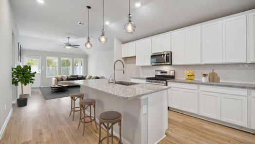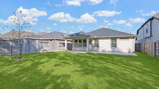 GORGEOUS ONE-STORY FARMHOUSE STYLE HOME ON A PRIVATE LOT! Open concept family room with high ceilings, luxury vinyl plank flooring and a separate dining or study area. The open concept kitchen features large island, granite countertops, tile backsplash, stainless steel appliances, 42" shaker style cabinets and pendant lighting. The primary bedroom is separate from the secondary bedrooms and has a walk-in closet, with dual vanities and a shower. Bonus features include a fantastic fenced private backyard, large covered patio with an extended concrete pad. Amira is wonderful community with easy access to the Grand Parkway, and Highway 249, popular restaurants and the Houston Premium Outlet Mall. Community amenities include an infinity edge pool, dog park, playground walking trails and state-of-the-art fitness center. Schools are zoned to the top-rated Tomball ISD. Never Flooded..