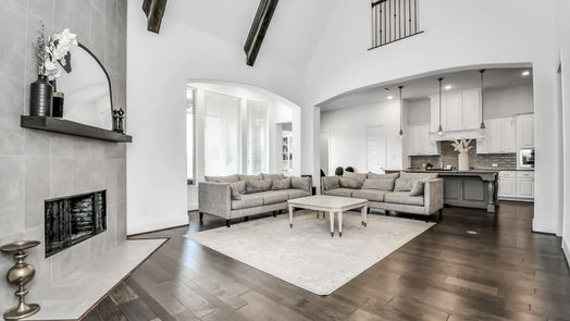 This 5-bedroom (with 2 bedrooms down), 5/2 half-baths, & 3 car garage home boasts an impressive design. The open-concept kitchen & living area feature soaring 20' cathedral ceilings with exposed beams in the living room, plus a cozy fireplace. The formal dining room leads to a gourmet kitchen with an island, double ovens, & a bright breakfast area. The Owner’s Retreat is highlighted by a wall of windows & a luxurious spa-like bath with separate vanities, double sinks, a soaking tub, & a separate shower with stylish tile surrounds. Upstairs, you'll find a Game Room & Media Room for entertaining or movie nights. Other features include hardwood floors, a curved staircase, a private home office, & generously sized secondary bedrooms, each with en-suite baths. The covered patio opens to a huge backyard, perfect for outdoor fun. Aliana offers 2 clubhouses, 2 swimming centers, a 24-hour fitness center, tennis courts, scenic walking trails & lakes. Make this dream home yours & schedule today!