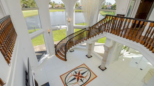 8703 Beringer is located in Gated Royal Lakes Manor. This 6057 Sq Ft Custom Home with its Circular Drive is one of the Few Lakefront properties. A $300,000+ Renovation was performed in 2022. A Total Kitchen Makeover included Quartz Countertops, new Cabinets and Appliances, including a 6 Burner Commercial Double Oven with Griddle. Floors of Polished White Granite cover most of Downstairs. All Carpeting was replaced with Wood Flooring. The Enormous Primary Bedroom overlooks the Lake behind, as does the Family Room, Kitchen, and Breakfast Room. Soaring Ceilings from the Grand Entryway extend from Front to Back. The First to Second Floor Glass Windows on the Lake Side Let in the Perfect Amount of Light and a Wonderful View of the Lake. Upper Level Window Coverings are Electronically Controlled. Bedrooms have Full Baths and another Full Bath is located near the Upstairs Game Room. A 6th Bath is in the Garage. The 22' x 19' Media Room could be converted to 2 Extra Bedrooms. New Roof 2024.