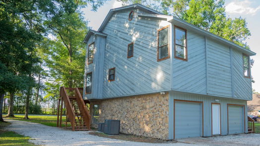 Enjoy country living in this contemporary 2 story split level on 1.475 acres! This secluded acreage community is tucked away just off County Rd 337 in Cleveland. Exterior features include cedar siding, & two balconies/decks on the 2nd and 3rd levels overlooking the property. New roof (2020), new HVAC (2 a/c units), freshly painted inside and out, new quartz kitchen countertop and sink, new & barely used oven/range. New toilets/ bathroom sinks, new vinyl plank flooring in the living/dining/kitchen area. If you like low taxes & country living but not too far from town, this home is a great choice! No HOA, never flooded. *Furniture virtually staged. Room sizes approximate.