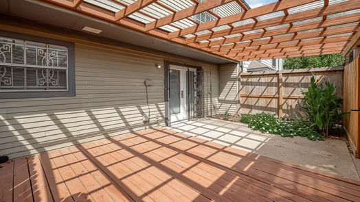 LOCATION! Discover this ideally situated home near Memorial City in a private, gated community. The spacious layout features a generous living room and an upgraded kitchen with sleek quartz countertops and modern cabinetry. The kitchen also comes equipped with all-new stainless steel appliances, including a refrigerator. A convenient half bath is located downstairs. Step outside to a private, fenced patio with new decking—perfect for entertaining—along with a spacious two-car port providing easy access to the home. The community offers scenic walking trails, pet-friendly areas, and an elevated pool with a unique lounging space. This home combines modern amenities with an unbeatable location, making it the perfect retreat for you and your family.