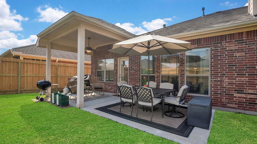 Welcome to this beautiful brick one-story in the wonderful family-friendly neighborhood of Memorial Springs! This amazing home has a gorgeous stained wood front door that opens to the foyer to greet your guests. Off the foyer on one side is the study w/French doors & formal dining room w/elegant molding on the other side. Spacious living room has wall of windows that overlooks the backyard w/covered & open patio spaces for entertaining & relaxing. Island kitchen is open to family room & has granite counters/stainless appliances/under-cabinet lights. Breakfast room has tons of windows to let in natural light! Escape to your primary suite w/wall of windows overlooking your private backyard. Spa-like bathroom has separate vanities/corner soaking tub/sep. shower. Two secondary bedrooms are set away from the primary to ensure privacy. Arches throughout! New fence/paint/carpet. AC only 2 years old. Neighborhood has pool/lake/trails. Come see this gorgeous house and make it your home today!