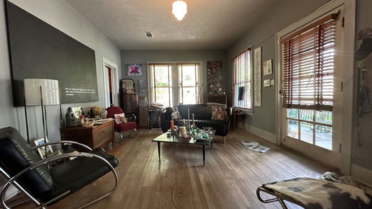 Charming 1920s home with hardwood floors, large balcony, and cozy floor plan in Houston's Hyde Park Annex.