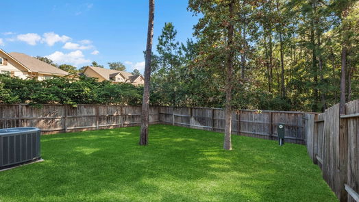 Corner lot with NO back neighbors! Welcome home to your private oasis in the desirable community of Woodforest. Immaculately maintained townhome on a corner lot and cul de sac! Wood flooring greets you upon entering. The spacious kitchen it is open to the family room and dining area and features granite countertops, stainless appliances, soft close drawers, pendant lighting, and ample storage! Enjoy your morning coffee on the balcony with serene views of native trees and nature. The oversized primary suite features an en suite bath, walk-in closet, and added storage. A useful powder bath and laundry room complete the main level. Downstairs on the first level, you will find two secondary bedrooms with generous closets, a full bath with separate shower, additional storage, and a large flex room with endless possibilities! Additional features include sprinkler system, epoxy flooring in garage, full gutters, and much more!