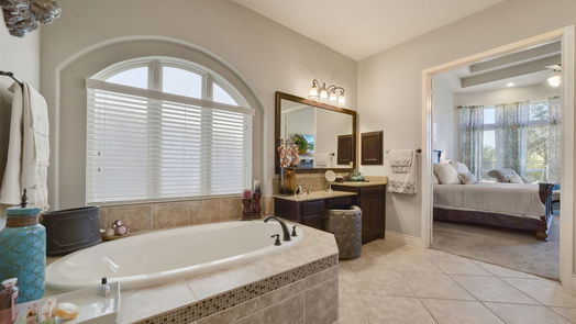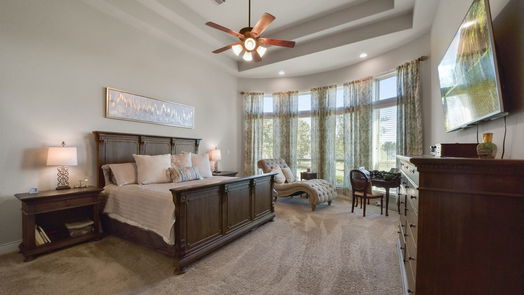 Luxury awaits at this gorgeous waterfront home situated on a quiet cul-de-sac street in Cypress Creek Lakes. Features include a stucco & stone facade, 4 car garage, two story entry with sweeping staircase, impressive family room with 20' ceilings & a wall of windows, a private home office, 5 bedrooms (2 downstairs), 4.5 baths, media room, gameroom & a large covered patio where you can relax & enjoy the views. The gourmet kitchen boasts a large center island, double ovens, walk-in pantry & butlers pantry. Luxurious owners suite with a curved wall of windows overlooking the backyard. The 1st floor guest bedroom has an en-suite bath & is next to the 2nd staircase. All bedrooms are generously sized & have walk-in closets. The extended covered patio overlooks the large backyard that has plenty of room for a future pool. The backyard has privacy fences on the sides & wrought iron along the back so you can enjoy the views.