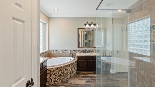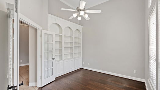 Stunning 4-bedroom, 3.5-bathroom residence nestled on a sprawling acre within the exclusive Silverstone gated community. Conveniently located mere minutes from I-45, hospitals, upscale dining, shopping destinations, and exciting lake activities! This home boasts exquisite details, from gleaming hardwood floors and elegant trey ceilings to integrated speakers in the game room. Designed with entertaining in mind, the layout flows seamlessly. The chef's kitchen is a culinary haven, featuring a central island, premium stainless steel appliances, and sleek granite countertops. Retreat to the spacious master suite with its spa-like bathroom, while generously sized secondary bedrooms, a family room, an office, and a game room offer ample space for relaxation and recreation. Outside, the fully fenced backyard beckons with its inviting pool and lush landscaping. Plus, enjoy the added benefit of no MUD tax!