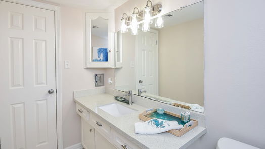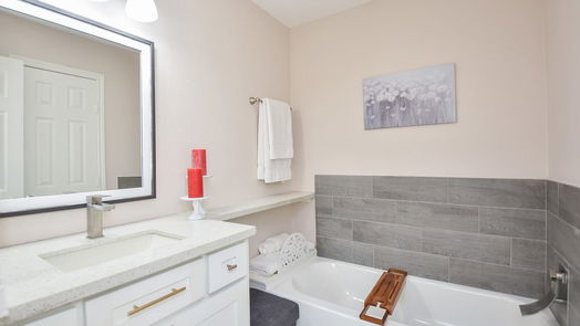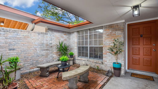 Renovated Modern Spanish Style Home! 4 bdrms/3 baths! Arched passage into the limewashed brick atrium. Original 60s carved wood front door! Polished terrazzo entryway. Open concept! Well appointed separate living areas. Bedrooms w/ceiling fans & walk-in closets! Kitchen features custom cabinets, open shelving, breakfast bar & walk-in pantry, trough sink! Split floor plan w/neutral tones. Primary bedroom w/sitting area, luxurious bathtub, big walk-in closet w/shelving, ensuite split bathroom w/quartz top vanity, trough sink & bathtub on one side/dual entry commode, shower, wash basin, & laundry on other. BIG backyard w/covered patio & mature pecan trees, making it ideal for outdoor gatherings. Energy efficient epoxy concrete floors; 2023 roof on the addition; 2023 main sewer lines replaced; Updated fixtures! Pre-wired alarm system; cul-de-sac lot w/no back neighbors! Electrical box & weather head (2015), 2023 cellulose insulation & soffetts replaced! NEVER FLOODED! SO Much MORE! NO HOA!