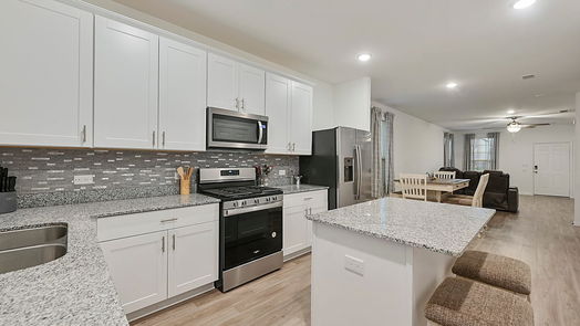 Ready to move? Come see if this beautiful 3 bedroom and 2 bath home might be what you are looking for! Enter the welcoming great room with an open layout from the living room to dining and kitchen. The kitchen has granite countertops, island, stainless appliances and tile backsplash. The large primary suite has huge walk in closet and the bathroom has a soaking tub with separate shower. Enjoy the covered patio in the backyard and lovely landscaping. Easy access to I 45 and close to shopping. Call today to schedule a showing!