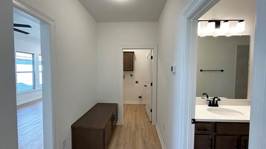 Wonderful 1 story open floor plan with 3 bedrooms and 2 full bathrooms. Kitchen features Quartz countertops recessed canned lighting and walk-in pantry. Spacious primary bedroom with walk in closet & double sinks. Ceiling fans in living room and primary bedroom. 2 car garage with garage door opener. Vinyl plank through main living area, carpet in bedrooms. Boot bench. Fully sodded yard with sprinkler system and fenced backyard, with rear covered patio. High efficiency low E tilt-in window and HVAC. Energy efficient appliances including gas range, dishwasher, and exterior vented micro hood. Matte black plumbing fixtures. Two remotes for garage door opener.