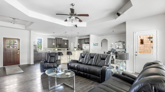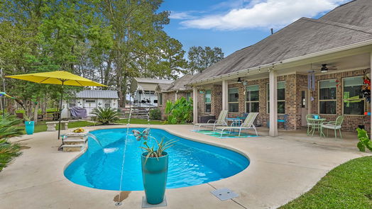 A little Country Charm is something everyone loves! Those warm feelings are exactly what you get when you first see this property. Situated on a perfect corner lot, and complete with a 3 car garage, an in ground POOL with covered patio featuring a wood burning fireplace, extra long driveway, covered RV storage, and a completely fenced back yard. Inside is open concept living with an absolutely perfect kitchen featuring a large island and huge pantry, ample cabinet and counter space, and beautiful finishes. Large windows in the main living area provides an abundance of natural lighting and a lovely view of the pool. The split floorplan provides the Owner's bedroom and private office on one side of the house and the secondary bedrooms on the opposite end. Enjoy the comforts of country living in this unique neighborhood. Community park with walking trails, neighborhood-wide holiday events and more. Just minutes from downtown Dayton and access to Hwy 90 and 99 Grand Parkway.