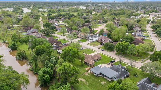 Experience waterfront living by launching a paddleboard or kayak from your own backyard! The spacious living room boasts high ceilings and a charming brick fireplace, and convenient built-in shelving. A spacious formal dining room offers versatility as a potential office space, while the well-equipped kitchen seamlessly flows into the breakfast area. The primary bedroom is conveniently located separately from the secondary bedrooms for added privacy. It showcases vaulted ceilings, a recently installed sliding door to the ensuite bathroom and convenient French doors to the patio. Your very own playground is found in the expansive backyard just steps to Oyster Creek. Take pleasure in the shade from mature trees and the privacy of having no neighbors behind you. Enjoy fishing, kayaking and other activities. Enjoy nearby schools, shopping, and the coveted Flood Zone X designation.