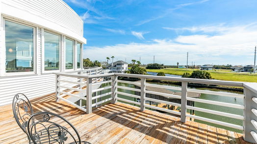 This well-maintained canal front home in the highly sought after Laffite’s Cove has beautiful views, multiple decks, large windows and an elevator to all levels. The unique kitchen is fully equipped with an island cooktop, custom cabinets, all appliances and breakfast bar. The kitchen opens into a grand style living area shaped like a ship. Plenty of seating, built-ins and a wall of windows that allow for natural light. Bedrooms w/ en suite bathrooms are all on the first level including the large primary bedroom w/ ensuite bath, double sinks, jetted tub, shower and walk in closet. Other amenities includes two garages, dining room, library/den, storm blinds, all oak & mosaic wood stairs & vaulted ceilings. Stylish boat house & dock built in 2021.Additional lot with landscaping and water feature next door is available at a separate cost. Sold unfurnished.