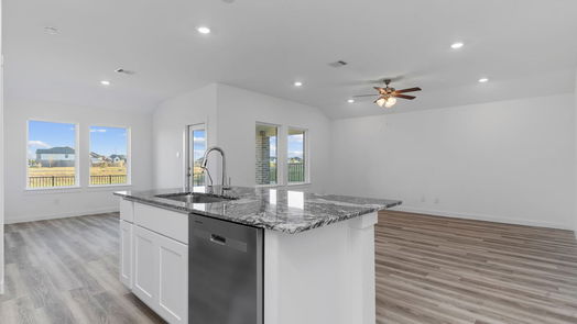 We would love to welcome you to the Huntsville plan! This is a single- story house that includes four bedrooms, two bathrooms, and a two-car garage. This house spans 1,750 square feet and will be a lovely abode for you and your family! The foyer opens to the guest bedrooms, bath, and hall linen closet. Center kitchen includes breakfast bar with beautiful granite counter tops, stainless steel appliances a corner pantry, and opens to the family room. The primary suite features a sloped ceiling and attractive primary bath with dual vanities, tub, shower, and spacious walk-in closet. The standard rear covered patio is located off the dining area with plenty of space for outdoor furniture. Resort Pool, 12-acre Lagoon, Golf Cart accessible, Parks, Fitness Center. You will love this home and the comfort it provides! Call for a tour today!