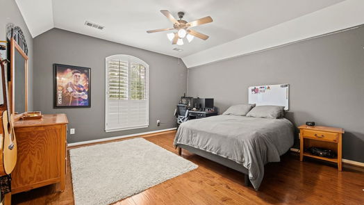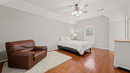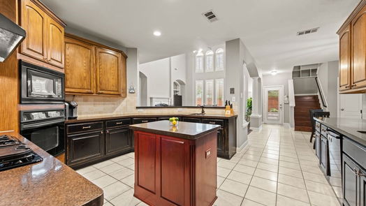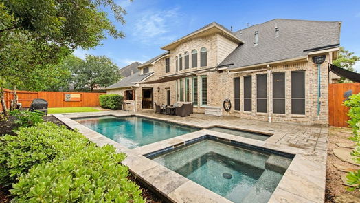 Step through the stunning 8 ft leaded glass door into a dramatic 20-foot entry featuring exquisite art niches and a majestic curved stairway. The beautiful living room also boasts a two-story ceiling, built-ins, and rich hardwood floors, complemented by elegant plantation shutters throughout. The gourmet island kitchen is a chef's delight, complete with granite countertops, two sinks, and ample space for culinary creativity. The expansive primary bedroom features trey ceilings, a luxurious glass block shower, and an enormous walk-in closet. All secondary bedrooms are generously sized, providing comfort for everyone. This luxurious residence includes a large game room, perfect for entertaining, two staircases, and a versatile flex room with a closet. Outside you'll enjoy the heated pool and spa plus the poolside bar. The gated drive ensures security and privacy for the large courtyard and the 3 car garages with epoxy floors. New roof March of 2020.