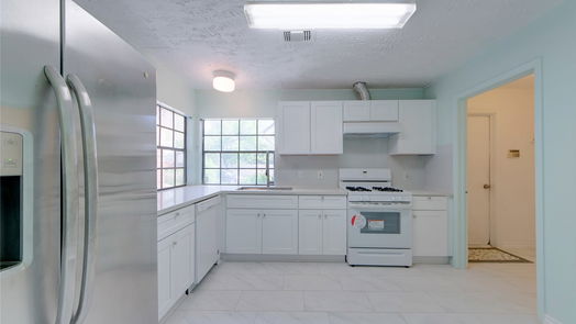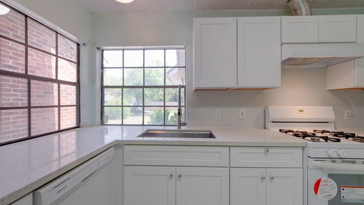 This one-story brick home presents a wonderful floorplan for new owners, featuring an open dining area and spacious family room with a soaring ceiling and a floor-to-ceiling brick fireplace. The kitchen is remodeled 2024 and is equipped with plenty of cabinetry and counter space for easy meal preparation, along with an adjoining large pantry and convenient utility room for ample storage. The primary suite is very spacious, offering fantastic natural light, a raised ceiling, a large closet, and a bathroom with a walk-in shower. Both guest bedrooms are also spacious, with large closets and easy access to a full bathroom. A huge covered patio overlooks a sprawling fenced yard. Recent improvements include a new roof 4/2022, foundation repair 4/2022, back fence replacement 3/2022, new siding 3/2022, and pest control 6/2022, HGAC 2021. Residents can enjoy several local parks, restaurants, and fantastic shopping options, with easy access to major freeways.