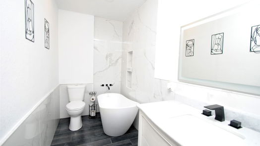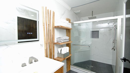 Introducing an unrivaled expression of modern living in Woodforest Subdivision meticulously renovated to charm the most discriminating tastes. This residence epitomizes modern sophistication while exuding a warm, inviting ambiance you will enjoy calling home. Open floor plan family room & kitchen creates an inviting atmosphere suitable for both daily living & grand gatherings. Primary suite creates a peaceful oasis that caters to your needs with effortless grace. X-large rain head shower in the primary bathrm w/built-in seat is sure to melt away the stresses of the day. Home office can easily serve as a 4th bedroom. Enclosed patio is a great space to enjoy an evening cocktail or your morning coffee. Partial conversion of the garage space is air conditioned & creates a one-of-a kind mud room with a large pantry and room for arts and craft storage. Upstairs guest quarters w/separate private entrance and kitchen has unlimited possibilities.
