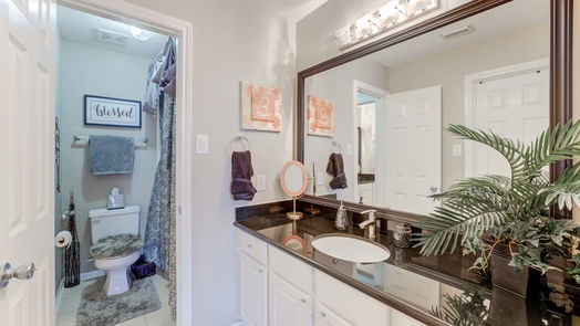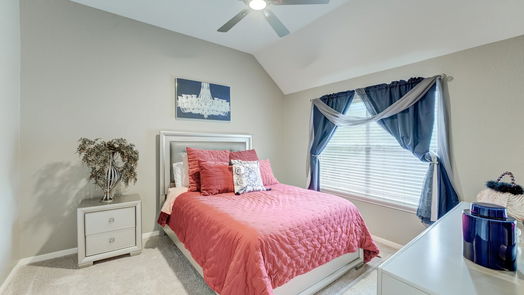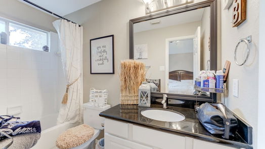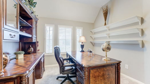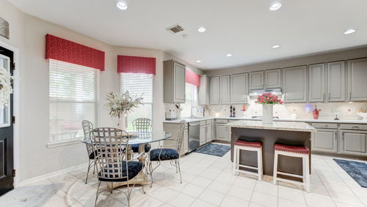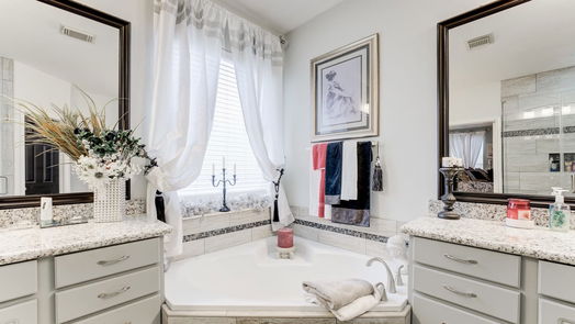 Find total comfort in this stunning 5-bedroom, 3.5-bathroom home on a cul-de-sac lot in Northlake Forest, boasting a brick veneer, high ceilings, wood flooring, 2 staircases, fireplace, study with French doors, game room, formal dining room, open great room, and covered patio in the spacious backyard. The lavish island kitchen is equipped with granite countertops, tile backsplash, gas cooktop, stainless steel appliances, breakfast bar, dining nook, and undercabinet lighting. The spa-like primary suite features a walk-in closet, dual vanities, a tub, and separate shower. Community comforts include greenbelt trails, a playground, tennis court, basketball court, and swimming pool. Situated off Hwy 290 & Spring Cypress Rd, residents are minutes from the Premium Outlets and Cypress Towne Center. Zoned to the Cy-Fair ISD.