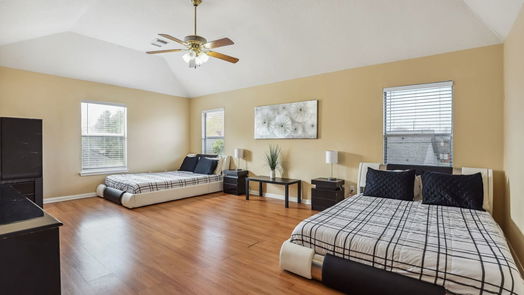Impeccably maintained gem SOLD FURNISHED, on an OVERSIZE cul-de-sac lot in Mission Glen. Enjoy close proximity to Fort Bend Library, Mission Bend Elementary & Westpark Toll. The low-maintenance lawncare & an expansive THREE-car garage greet you. The inviting open layout features elegant laminate floors complimented by crown molding & contemporary paint palettes. The large formal living & separate dining room offer stylish lighting & exquisite tray ceilings. The gourmet kitchen hosts sleek granite, SS appliances, abundant storage, & center island. Adjacent, an expansive great room is illuminated by natural light & a cozy gas fireplace. Upstairs, an oversized game room awaits, along w/ an impressive owners suite w/ soaring ceilings, opulent en-suite bathroom & generously sized walk-in closet. 4 spacious bedrooms share 2 full bathrooms, offering ample accommodation. The fully fenced backyard beckons w/ a covered patio offers ample space for potential amenities like a pool or playset.