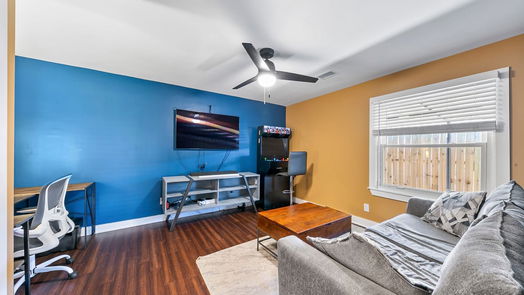 Step into this one-story haven in a quiet, friendly neighborhood that's growing with new construction homes! Renovated in 2022 with modern amenities: new HVAC, spray foam insulation, electrical updates, Pex plumbing, tankless water heater, open floor plan for entertaining. Admire the elegant kitchen with quartz counters, custom cabinets, beautiful tile, and breakfast bar. The primary suite boasts a luxurious en-suite bathroom & with a new custom walk-in closet. Relax in the lush backyard with a pergola, perfect for guests. Love the diversity of the neighborhood and enjoy easy access to the sports Arena, medical center, and downtown. From the remodeled bathroom with stone tile to the painted living area and custom primary closet, this charming remodel is a must-see gem! Near Houston's best Taste Dairy Maids' artisan cheese, Lei Low's exotic rum, street food Thai market, or explore The Houston Farmers Market. A world of flavor at your doorstep!