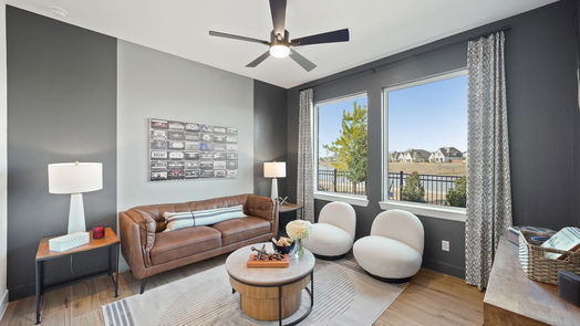 Discover your dream home with the Sweetwater! Upon entering, you'll be greeted by an inviting atmosphere with an open-concept layout and vaulted ceilings that create a sense of spaciousness and grandeur. This spacious one-story design encompasses a suite retreat, as well as a versatile study, perfect for remote work or a cozy reading nook. The gourmet kitchen, complete with a large walk-in pantry and large kitchen island overlooking the family room. Entertain with ease in the expansive living area featuring a gorgeous and modern electric fireplace, which flows seamlessly onto a large covered patio, providing the perfect setting for outdoor gatherings and relaxation on a greenbelt lot with no-rear neighbors. Retreat to the primary bedroom sanctuary, featuring a coffered ceiling. The primary bath offers a spa-like experience with dual sinks, a luxurious freestanding tub, a mud-set shower and large walk-in closet. 3-car garage with second bay.
