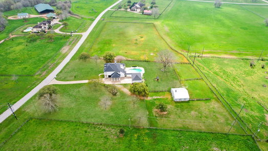 Stunning "New Orleans Southern Colonial" home in the quiet, equestrian community of Grand River. Situated on 5.95 acres of spectacularly manicured property within 35 minutes to downtown Houston! Perfectly situated on the grounds, this home has been tastefully designed with elegance for comfortable living and entertaining throughout. New Orleans style balcony's, gathering kitchen with a breakfast bar & island, and two custom staircases are just a few of the impressive details. Cool off in the refreshing pool framed by a grand pecan tree or enjoy the horse lovers dream with an outdoor arena, pastures, and a 36x40 barn equipped with 4/5 stalls and a charming tack room. Pack your boots and come enjoy the privacy of wide-open spaces in your new private estate!