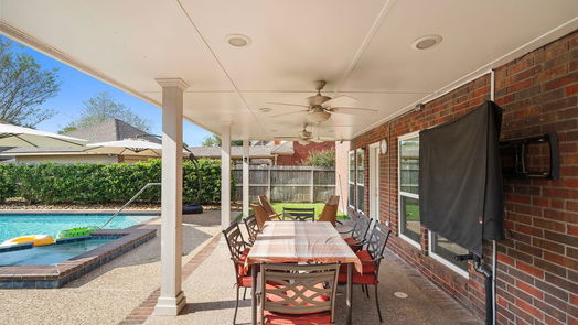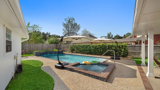 Beautifully maintained home in the desirable Colony Meadows community! This property exudes curb appeal w/ classic brick exterior, manicured landscaping, & automatic driveway gate. Inside discover a spacious, light-filled interior featuring updated interior paint & engineered wood flooring throughout. The floor plan is functional offering a home office, a formal dining room, & a cozy living room w/ a gas-log fireplace & open sightlines to the kitchen. The kitchen is a chef’s dream equipped w/ ample workspace, an island, double ovens, gas cooktop, & windows framing views of the backyard. All bedrooms are upstairs, including the expansive primary suite w/ a large sitting area & two closets, & down the hall you’ll find roomy secondary bedrooms. The backyard is truly an oasis, featuring a large covered patio, a sparkling pool w/ water feature, a relaxing hot tub, & green space for outdoor fun. Easy access to major highways, shopping, Sugar Land Town Square, & is zoned to top-rated schools.