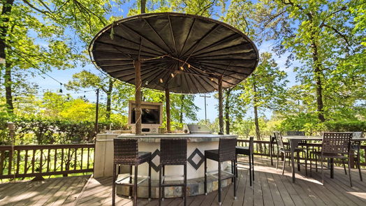 Gorgeous custom home with golf course views, balcony, tiki bar, and spacious living areas.