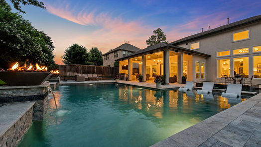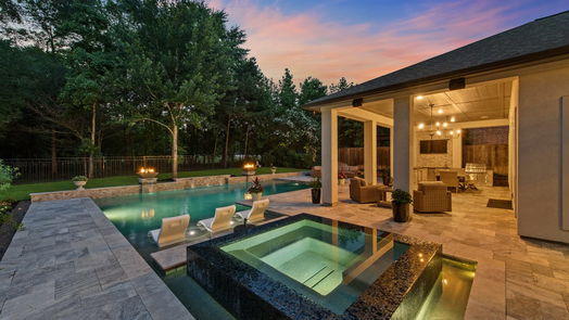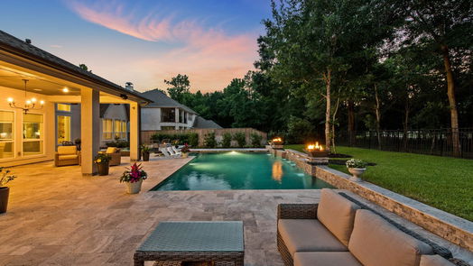 Indulge in luxury living at this stunning property located in the Woodforest Development.The property sits nestled on the 17th green and 18th tee box of Woodforest GC backing to a tree lined buffer with course views tucked on a cul de sac st. This home is sure to impress the distinguished buyer looking for luxury, convenience of amenities, shopping&dining and privacy.Private home office, formal dining, showstopper living room with soaring ceilings, gourmet kitchen with spacious breakfast nook, butlers pantry, downstairs game/media room, laundry room with large storage/utility closet, primary bed/bath and secondary bedroom/en-suite all located downstairs.Upstairs you will find entertainment in the media room,3 bedrooms and 2 full baths.This exquisite design overlooks a huge yard, spacious covered patio with outdoor kitchen.Step into your private paradise with resort style pool/spa,fire pit and ample travertine decking for multi sitting options. Short drive to the Exxon Campus in Spring.
