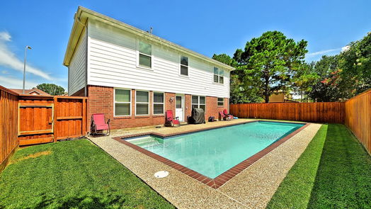 Newly painted 4-bed, 2.5-bath home with study, cozy fireplace, and private pool in quiet cul-de-sac.