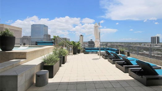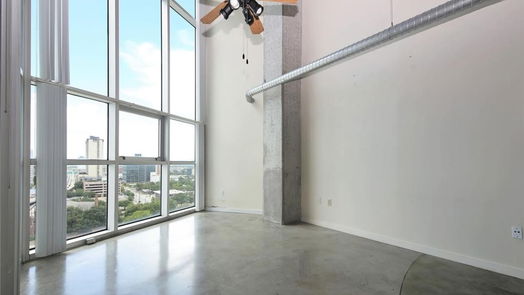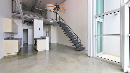 Experience luxurious urban living in this executive mid-rise condo with industrial loft style. Enjoy concrete flooring, floor to ceiling windows, and views of Houston from your balcony. The metallic staircase leads to a loft area perfect for bedroom furniture and study space. The kitchen opens up to the dining and living areas, with exposed brick adding charm. With a few cosmetic upgrades this unit could have your personal touches. Building amenities include a rooftop infinity pool and spa, as well as a bamboo garden, fountain, outdoor fireplace, grills, and patio area on the 5th floor. Walking distance to dining, parks, shopping, and supermarkets make this condo easy to love.