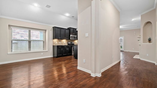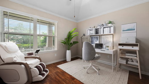 Beautiful one-story home located in Grand Mission Estates. Step inside to an open floorplan with a large family room and a stunning fireplace. Home includes an office/study room with French doors, and a versatile open room that would be great for a gym or playroom. Primary bath includes separate shower, bathtub, double sinks, and walk-in closet. Fabulous kitchen with a granite island, granite countertops, stainless steel appliances, a custom backsplash, and plenty of cabinet spaces with underlighting. All brick, back covered patio with no back yard neighbors and a sprinkler system. Refrigerator, washer and dryer included. Be part of the Grand Mission Estates Community with excellent amenities like pools, clubhouse, fitness center, and a walking trails.