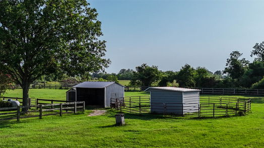 This stunning 5-bedroom 2.5 bath 2-story home sits on 4 picturesque acres, offering ample space and privacy. The main floor includes a cozy library & separate study, as well as a spacious living room w/woodburning fireplace, a large island kitchen w/tons of cabinet space & granite countertops, & a half bath. All bedrooms are upstairs, including a large primary retreat featuring 2 walk-in closets, gorgeous cathedral ceilings & an ensuite bathroom w/a huge walk-in shower! You will also find a full secondary bath & a utility room on the second level! Stay cool in the Texas heat w/2 HVAC units or take in the scenic country views on the 10X14 back deck! The attached 2.5 car garage comes w/a mop sink for added convenience, while an additional detached 2 car garage provides extra storage or workshop space. This property can easily accommodate horses w/an existing round pen & 2 run in sheds! Situated on a private road w/electric gated entry just minutes from Hwy 290 & the Grand Parkway!