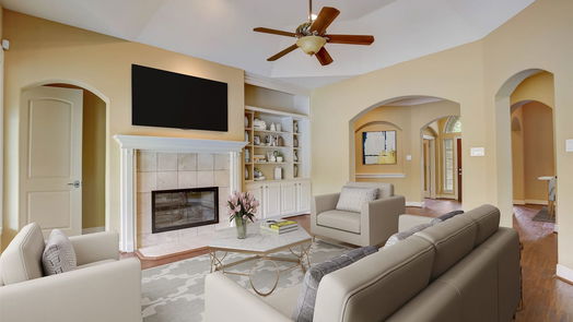 Stunning LAKEFRONT home in Kings River Estates off Lake Houston, boasting a sparkling pool and excellent stone/stucco elevation! Inside, you'll find wood and tile flooring, high ceilings, crown molding, neutral paint throughout, wrought iron stair railing, and large windows allowing great backyard views. The 1st floor offers a foyer, French door study, formal dining, fireplace den, and eat-in kitchen featuring a sprawling island, ample cabinet space, granite counters, and stainless steel appliances. Also downstairs, there's a secondary bedroom with an adjacent full bath, perfect for guests or home office, while the master suite includes it's own patio access, dual vanities, separate shower/jetted tub, and a fantastic walk-in closet. Upstairs holds the spacious game room and 2 bedrooms that share a Jack & Jill bath. Enjoy outdoor entertaining with both open and covered patio spaces as well as proximity to multiple golf courses, FM 1960, shopping, dining, and more in Atascocita/Kingwood!
