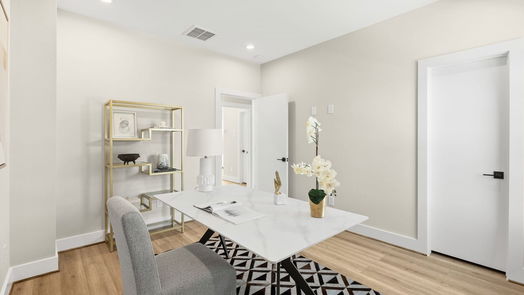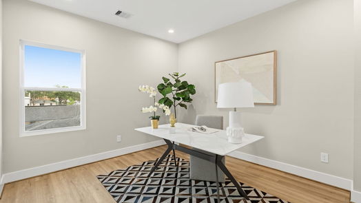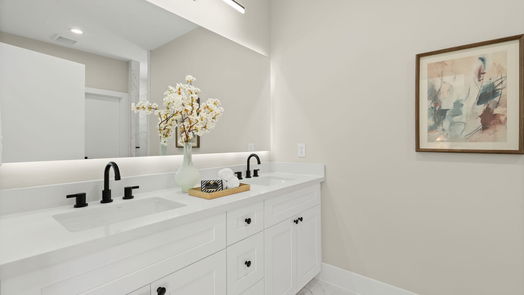 Welcome to Blalock Square, a gated community offering a brand new two-story home equipped with top-of-the-line features. This spacious home boasts three bedrooms, two and a half bathrooms, and a two-car attached garage with an electric car charging station. The Smart Home Features include LED lights, a smart garage door opener, thermostat, deadbolt, doorbell, electric car outlet, low voltage panel, smart light switch, and HVAC 16 SEER. The open concept design with high ceilings allows for ample natural light throughout. The first floor includes a living, dining, and kitchen area, while the second floor features the primary bedroom with his and her sinks, a large soaking tub, and a separate glass door shower. The location provides easy access to Beltway 8, CITYCENTRE, Galleria. This exclusive gated community is comprised of only 10 homes and offers modern floor plans and high-end interior finishes, constructed with quality by MTY Builders.
