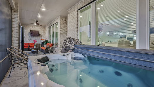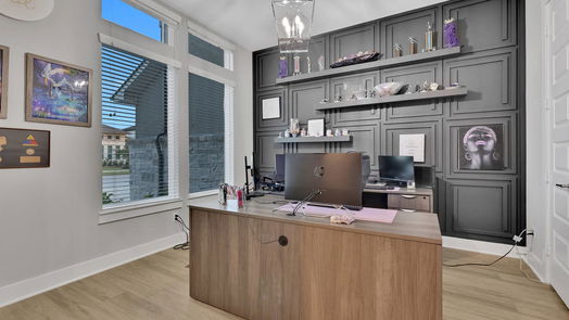 This modern beauty is located on a cul-de-sac street in the prestigious Bridgeland Prairieland Village community. You will love relaxing in your private pool & jacuzzi with lake views! Double front doors welcome you inside this luxurious home featuring 25ft ceilings, wall of windows, towering floor to ceiling fireplace, curved staircase, custom wall paneling & light fixtures + so much more! The kitchen is a chef's dream with double ovens, 5 burner gas cooktop, 42in cabinets as well as quartz countertops. This 5 bed-4.5 bath floorplan includes the primary suite, 2nd bedroom & custom home office downstairs-there is even a hidden room behind the bookshelf! Upstairs you will find the gameroom, media room, 3 bedrooms & 2 full baths with one being a Jack n Jill. This master planned community offers an active lifestyle with the walking-bike trails & community center with multiple pools, playground & shaded seating. Soft water system conveys with property, Zoned to McReavy Elementary