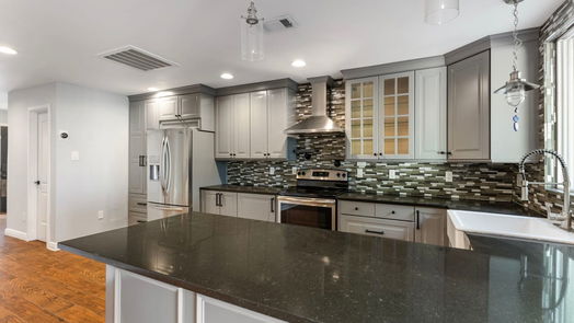 This newly upgraded to a 2-bedroom townhome on the Tournament Players Golf Course in Grogan's Mill offers modern style and striking golf course views! Enter through a gated courtyard into an updated interior featuring sleek wood-look flooring (no carpet!), recessed lighting and quality finishes throughout. The staircase is framed by a chic wrought iron handrail and a pendant light fixture. The main floor includes a spacious family room, a well-appointed kitchen with granite countertops, stainless steel appliances, and a breakfast peninsula, as well as a dining area that opens to the back patio. Upstairs, find the owner’s suite with a study nook, walk-in closet, and en-suite bath, along with a second bedroom overlooking the golf course. The fenced backyard includes a patio and green space—perfect for relaxation or entertaining. With quick access to I-45, The Woodlands Town Center, The Waterway, The Pavilion, and Market Street, this home is ideally located for convenience and enjoyment.