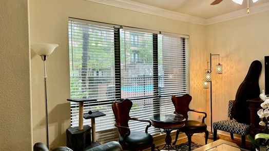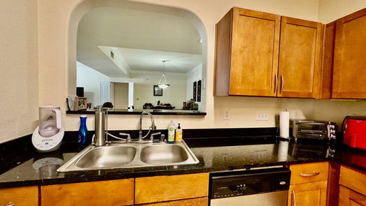 Luxury condominium located in the heart of Sugar Land, gated with upscaled resort type of amenities. Large unit with spacious living and dining areas, 2 bedrooms each has its own bathroom. View of the spectacular waterfall pool from living room and bedrooms, area courtyard from your private balcony. Extra-large kitchen with granite countertops, plenty of counter and cabinets space. Utility room offers washer/dryer and more counter and storage spaces. New Hot water heater/microwave in 2024. Common areas feature living room with electric fireplace and TV, dining tables, bar, full kitchen, meeting room and on-site theater. Enjoy the convenience of major freeways and easy access to shops, restaurants & bars, City Hall, First Colony Mal, nightlife and entertainment at the Sugar Land Town Square! Excellent Fort Bend schools. Low property tax. unit has two assigned parking spaces.