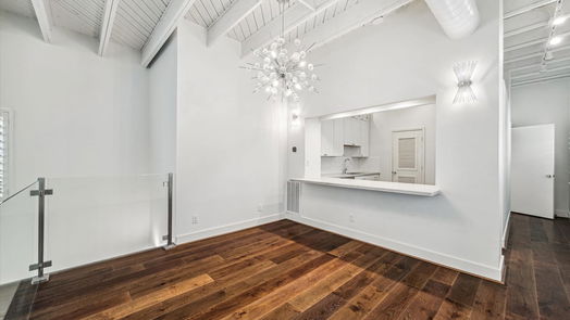 Renovated 2bd, 2bth townhome in Montrose with designer touches, open trusses, and modern kitchen.