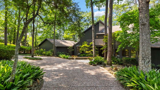 Welcome to Holly Creek Estates, a one-of-a-kind soft contemporary custom home on 5 acres. 3-story windows seamlessly blend indoor & outdoor spaces w/ abundant light in every room, enjoying gorgeous parklike views. This magnificent architectural home was designed w/ special details, finishes & features. The open living/dining concept connects the spacious Thermador kitchen, family & living room areas w/ direct access to outdoor living areas, ideal for entertaining family and friends. The main level includes the primary suite, music rm/library, & all living & dining areas. The upper level has 2 bedrooms w/ensuite bath & office/loft bedroom. The lower level has storage spaces, a large laundry rm, a laundry chute & a large flex space. Outside improvements: landscaping, pool w/water wall, fire pit area, fenced trash, fenced gas power generator & gated dog run. Holly Creek Estates is a quiet country community w/ winding roads & hilly terrain typically not found in the greater Houston area.